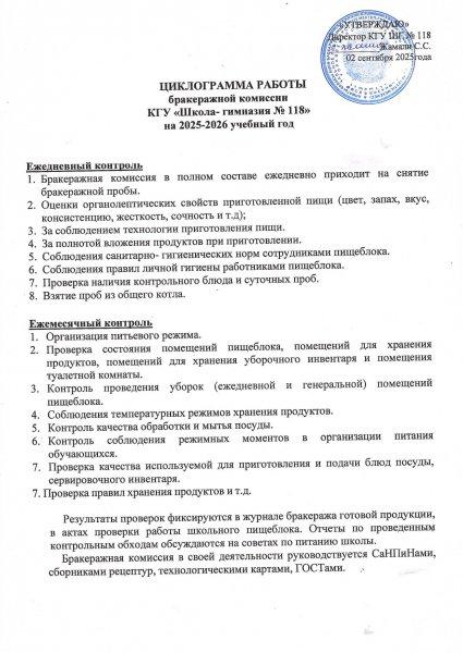 02 қыркүйек 2025 0 1 2 3 4 5 Бракераж комиссиясының 2025-2026 оқу жылына арналған жұмыс циклограммасы/Циклограмма работы бракеражной комиссии на 2025-2026 учебный год Осы беттің QR-коды:QR-код этой страницы: